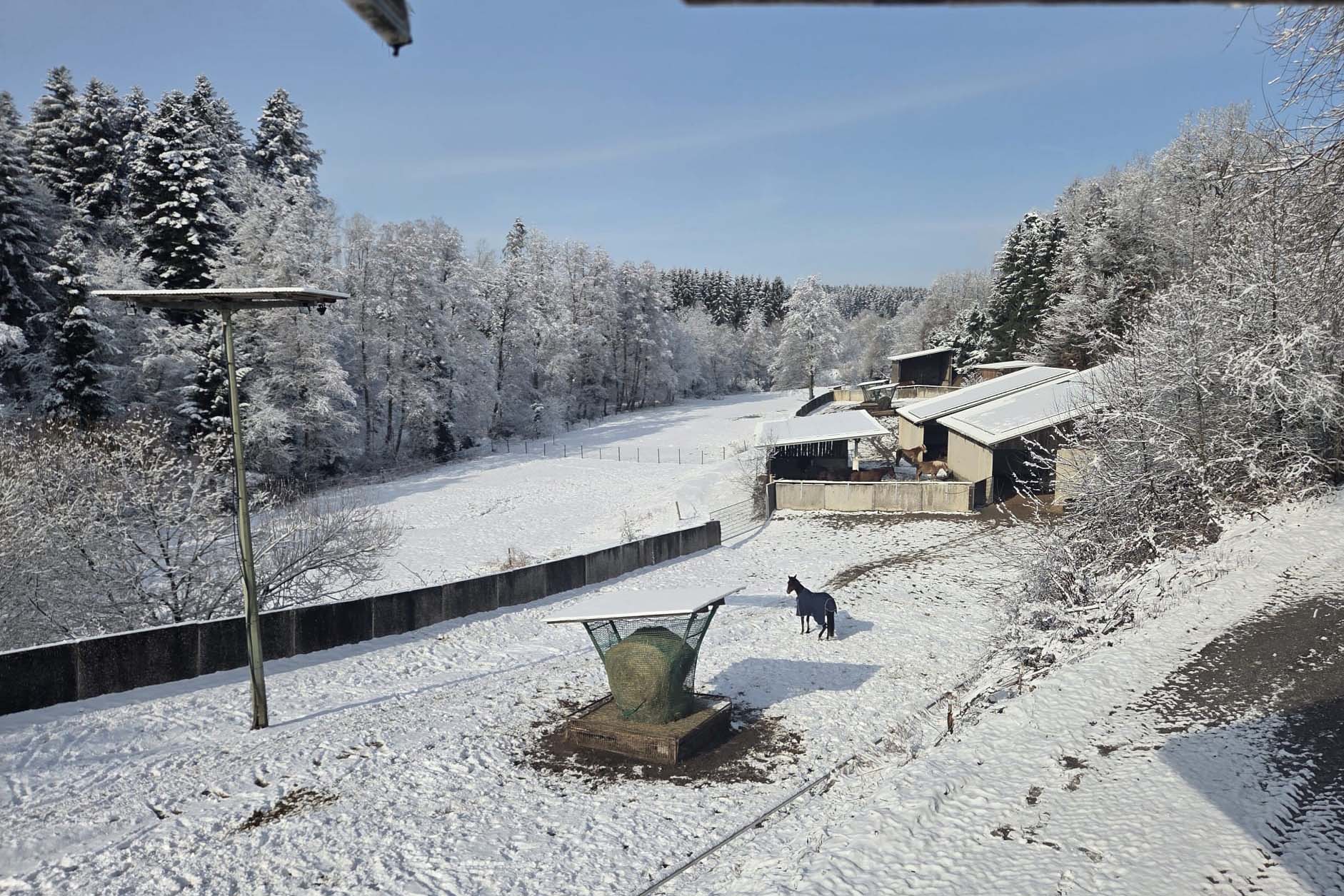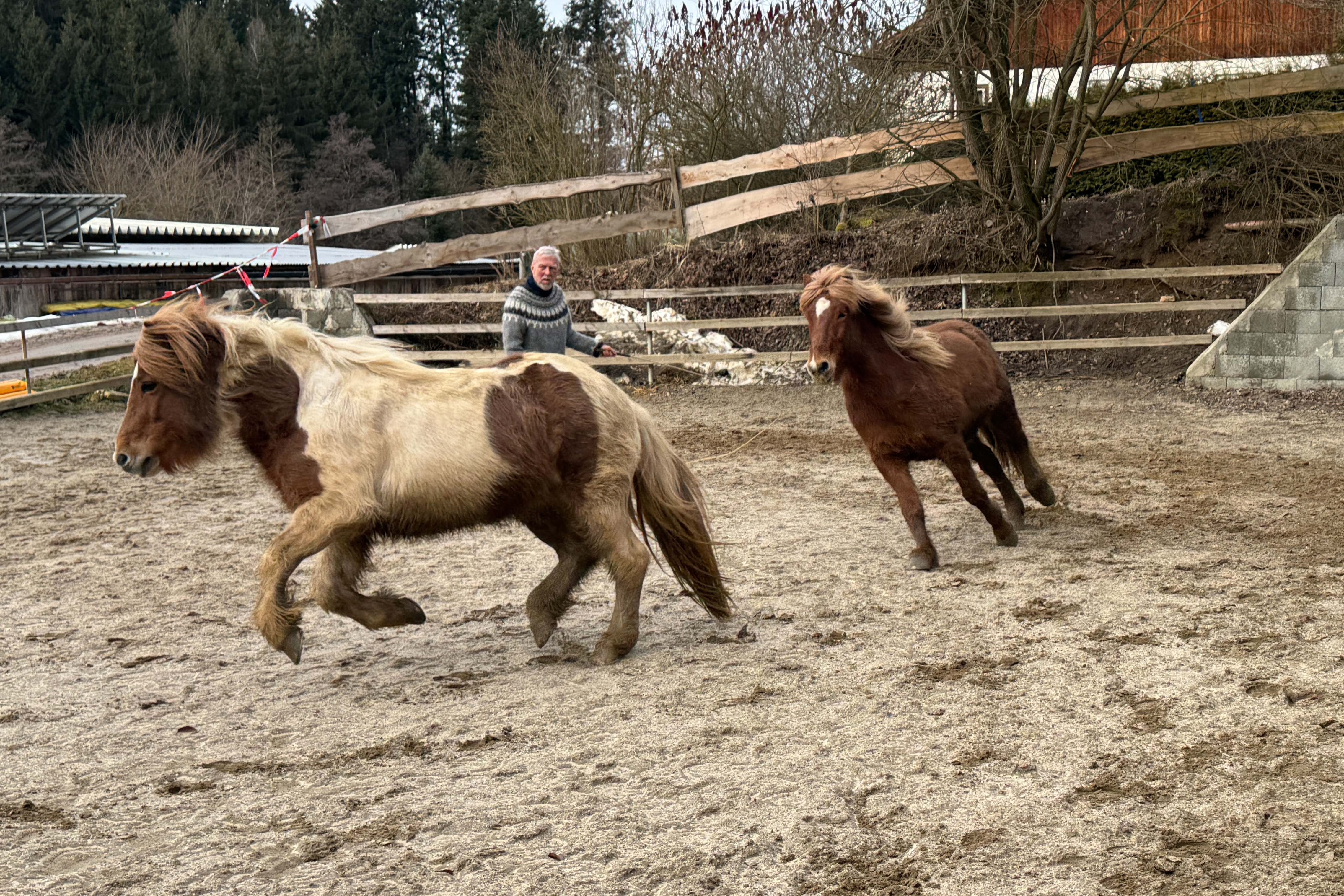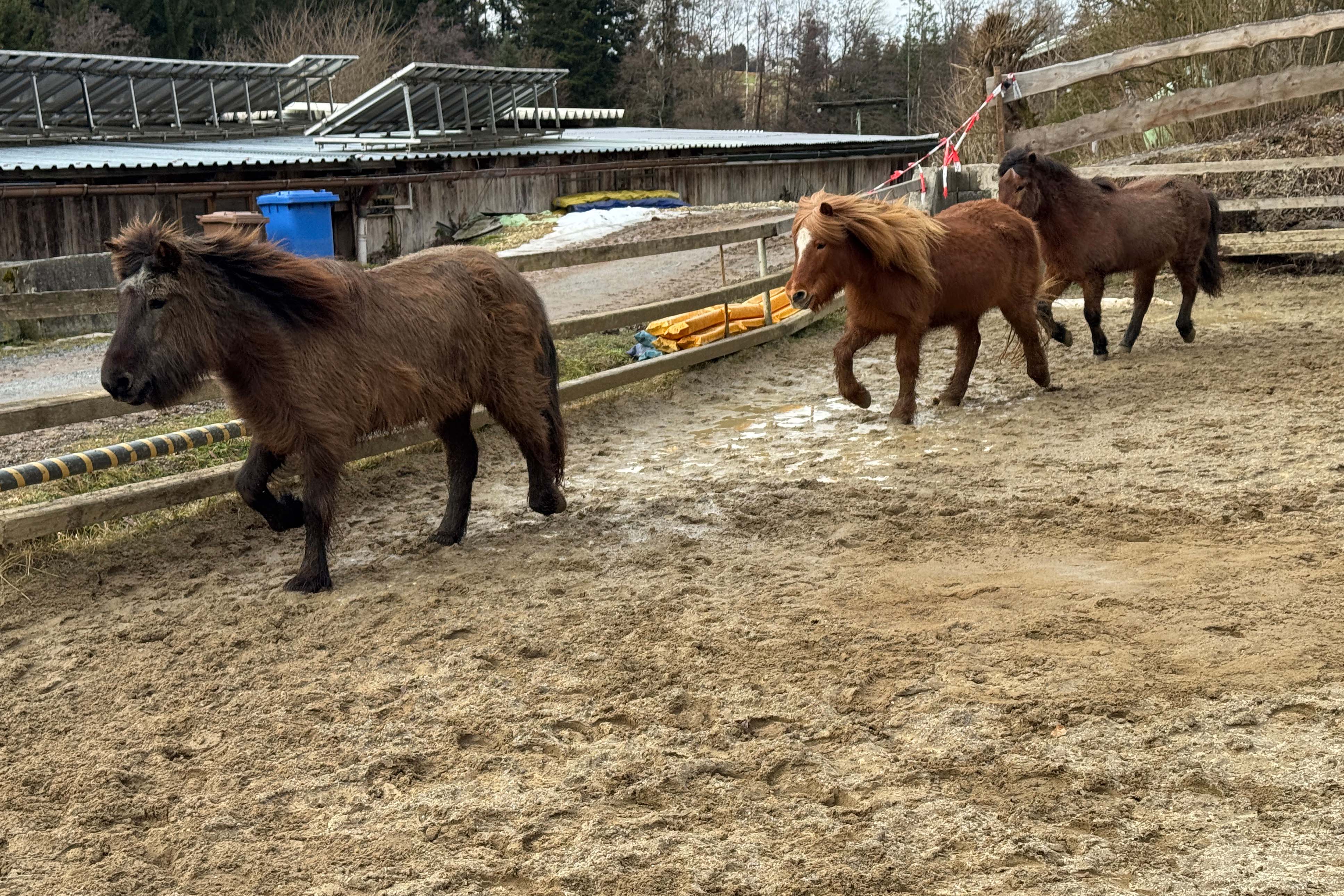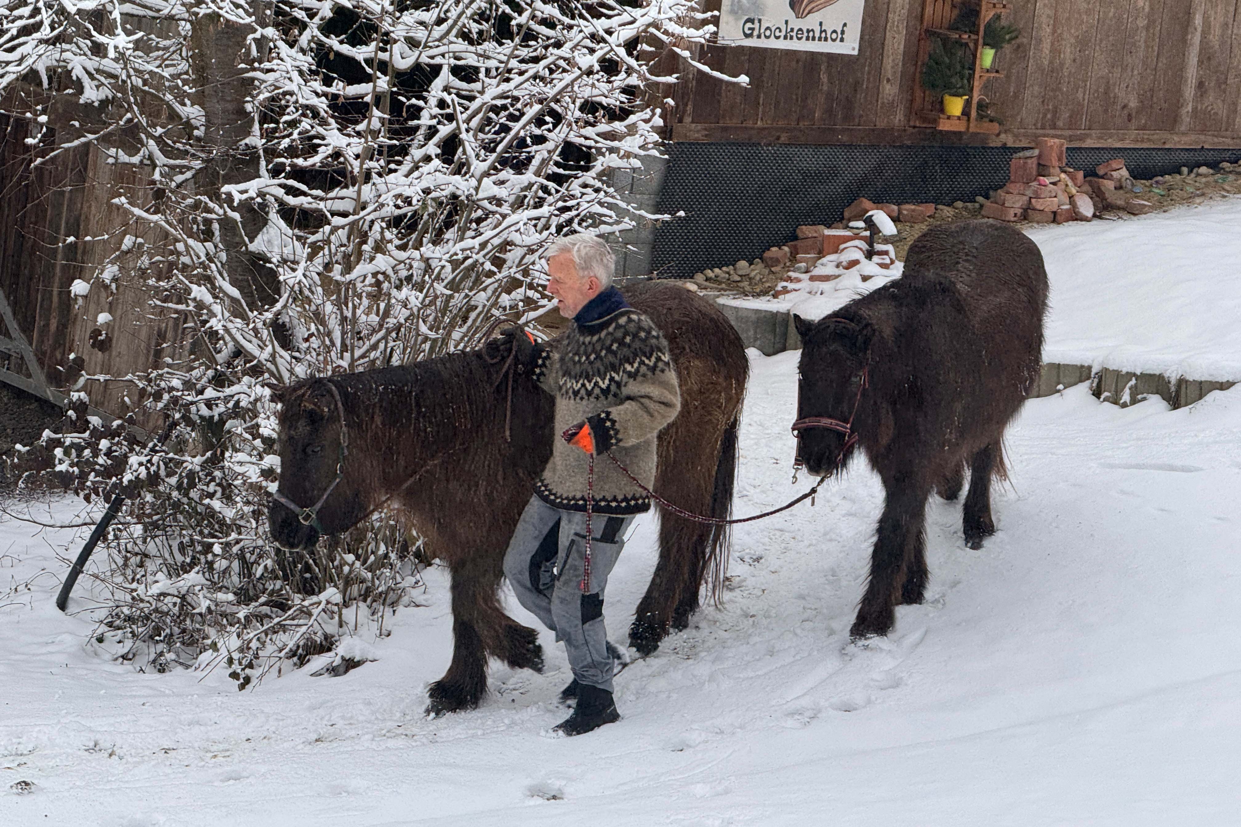 Der Winter hielt uns fest im Griff, wobei wir uns flexibel auf wärmere und kältere Temperaturen einstellen mussten. Der Schnee war schon großflächig geschmolzen, samt der Eisplatten, da fing es wieder an zu schneien. Für kurze Zeit zauberte die Sonne ein “Winterwonderland”! Levin baute aus dem reichlich vorhandenen Schnee einen freundlichen Drachen (siehe oben). Und in der Heuherde begrüßten wir Sakura und Cimbi (siehe Teil 2). Gegen Ende Februar wurde es mit “Dauerregen” so richtig ungemütlich.