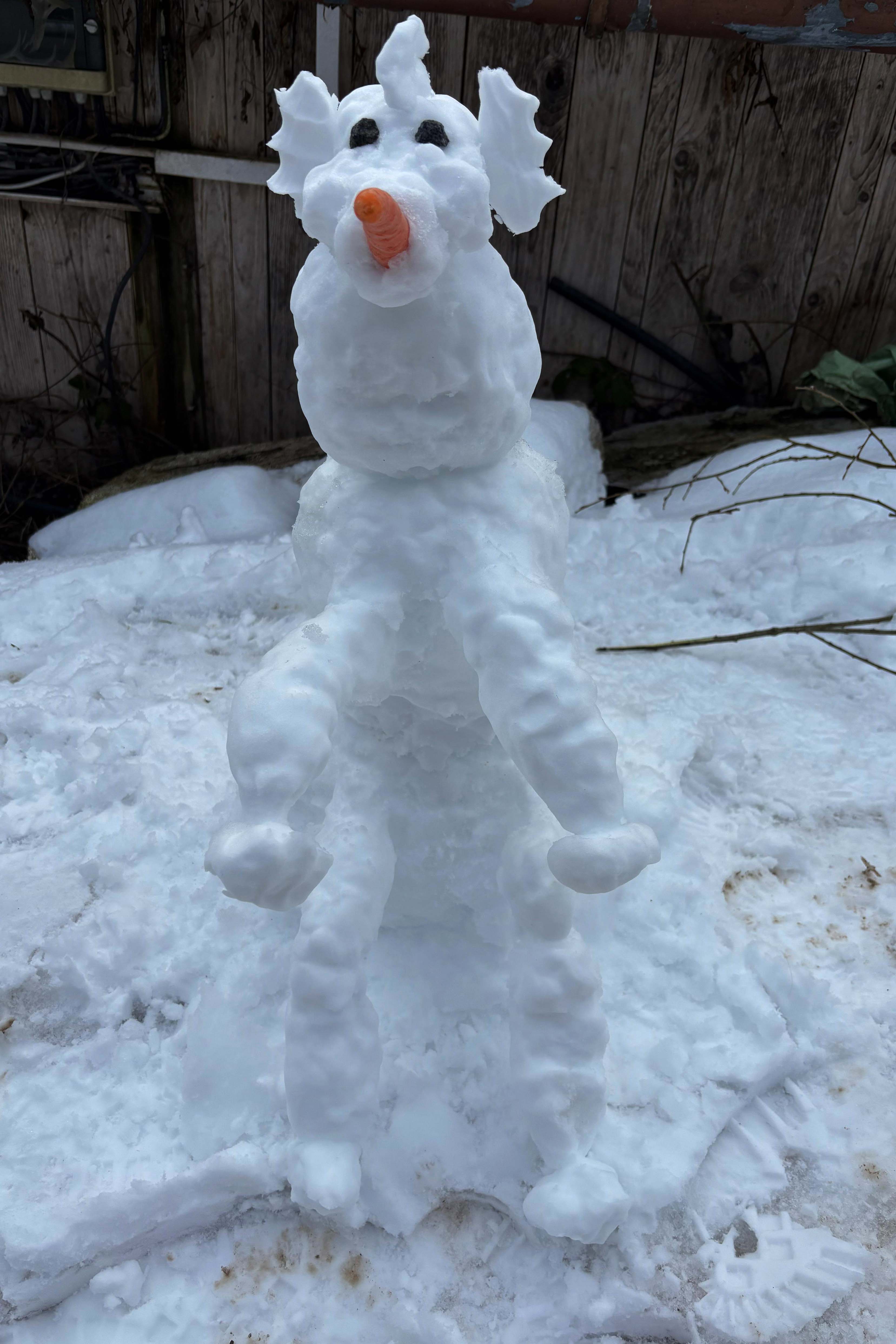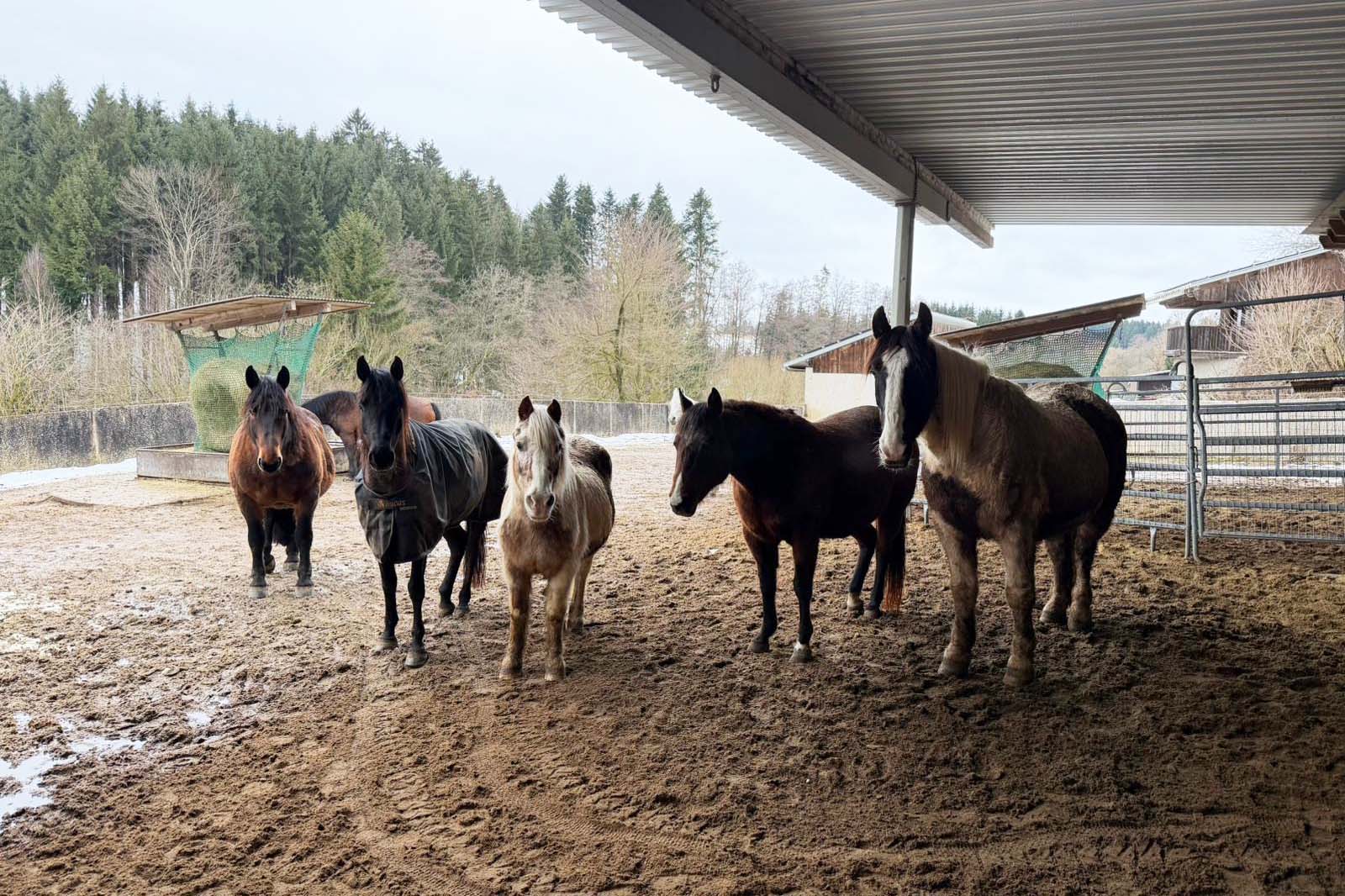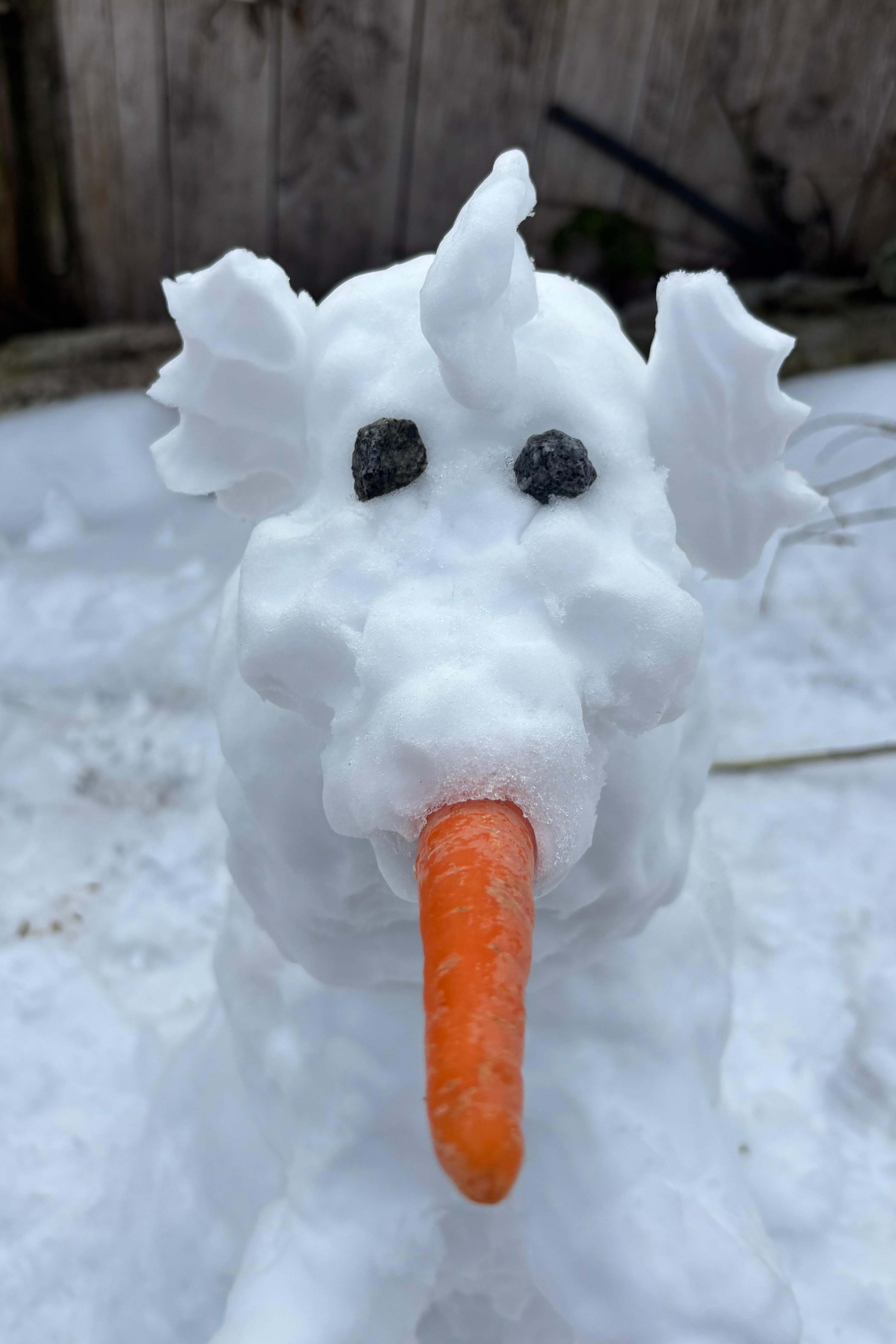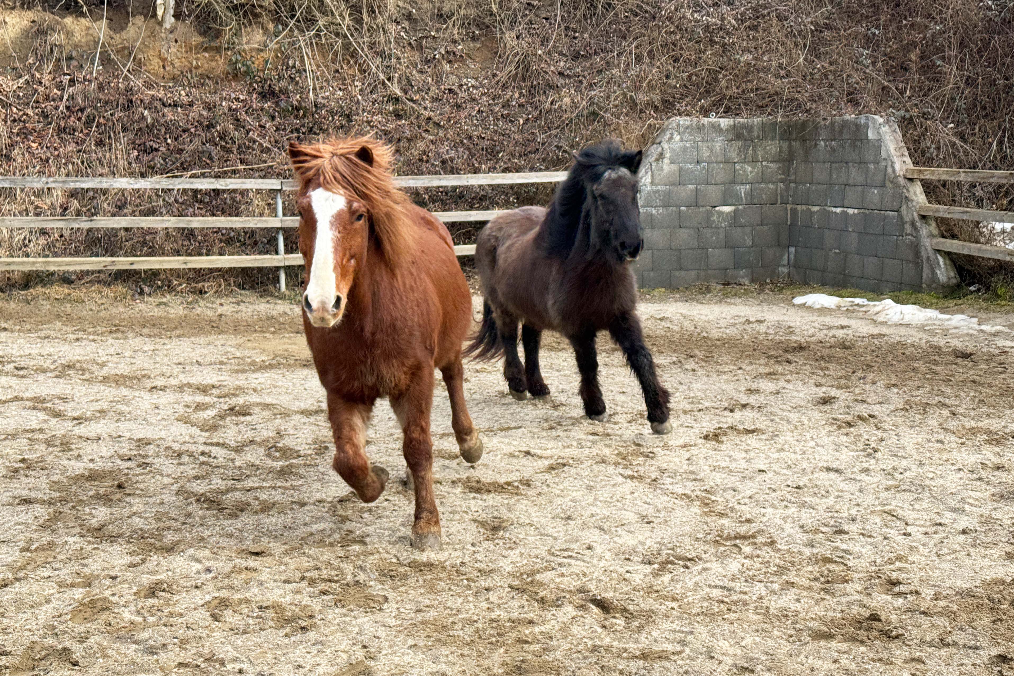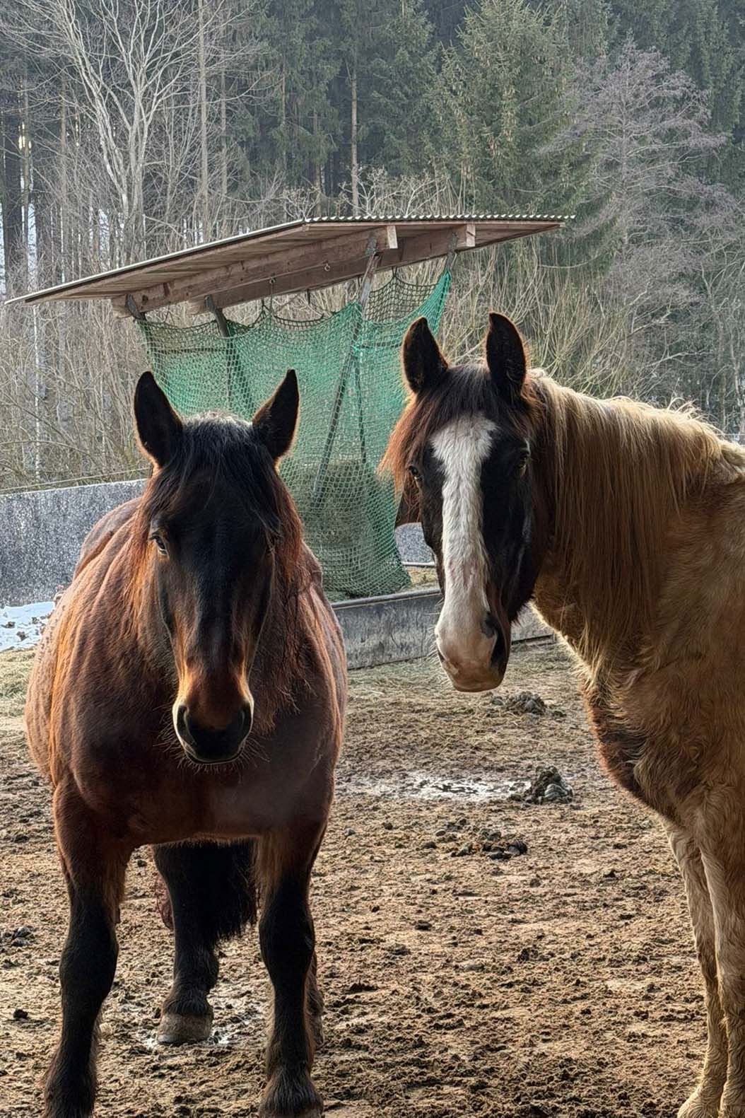 Der Winter hielt uns fest im Griff, wobei wir uns flexibel auf wärmere und kältere Temperaturen einstellen mussten. Der Schnee war schon großflächig geschmolzen, samt der Eisplatten, da fing es wieder an zu schneien. Für kurze Zeit zauberte die Sonne ein “Winterwonderland”! Levin baute aus dem reichlich vorhandenen Schnee einen freundlichen Drachen (siehe oben). Und in der Heuherde begrüßten wir Sakura und Cimbi (siehe Teil 2). Gegen Ende Februar wurde es mit “Dauerregen” so richtig ungemütlich.