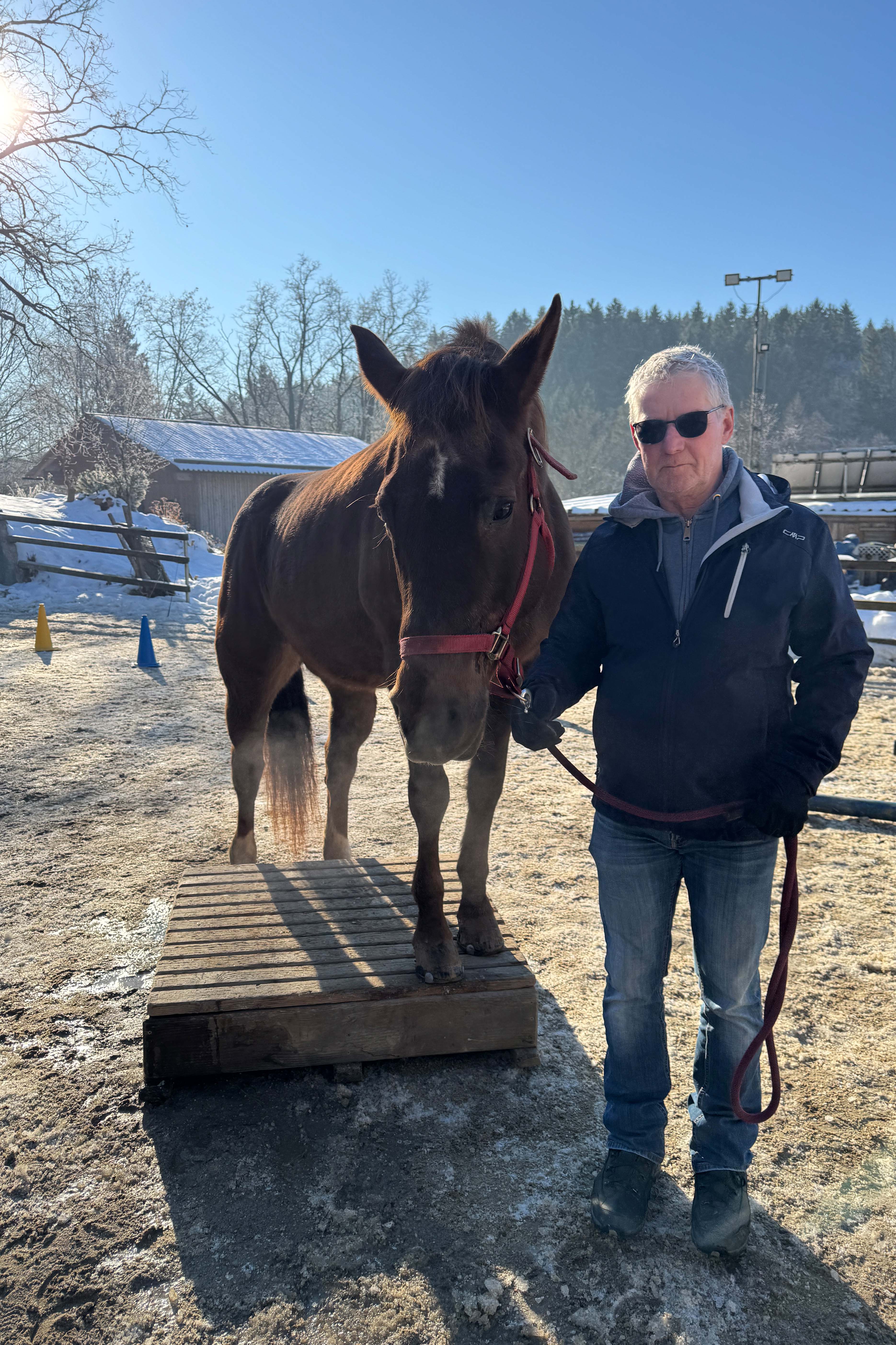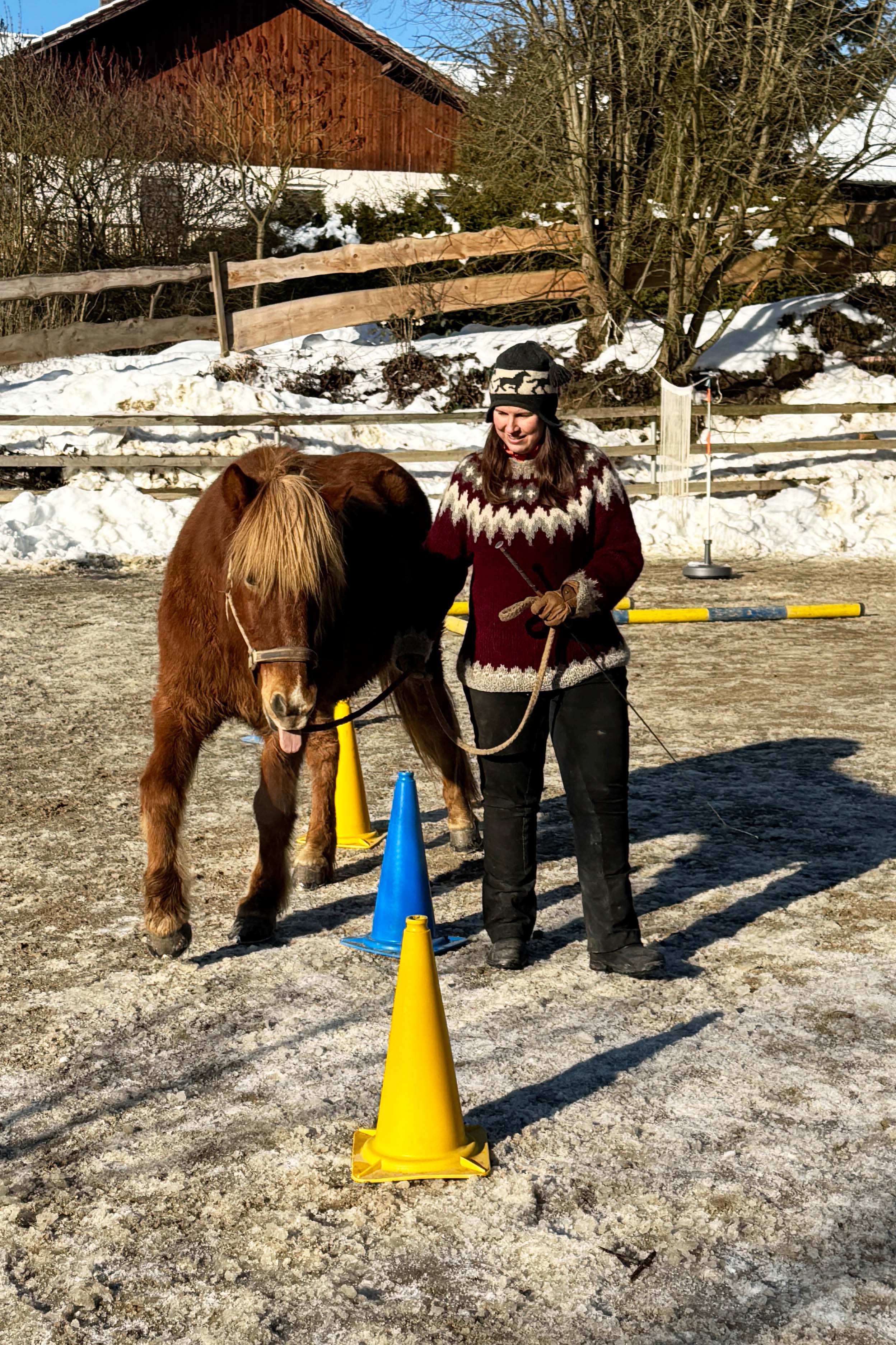 Aber auch die Sonne verwöhnte uns ab und zu. Das nutzten wir gleich zu ein paar Geschicklichkeitsübungen am Reitplatz.