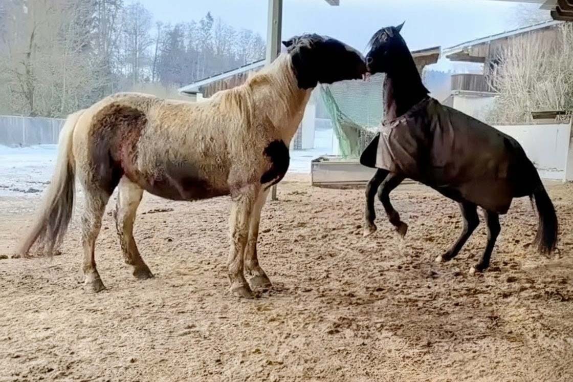 Der Winter hatte uns im Verlauf des Januars weiter fest im Griff. Die eisigen Temperaturen blieben uns erhalten, mit gefrorenem Schnee und teilweise eisigen Wegen. Hannes war ordentlich mit Streuen beschäftigt. Julia filmte Mogli und Sharik beim Spielen. Ela wurde in ihrer Kreativwerkstatt aktiv und machte auch diesem Film “Standbilder”.(siehe rechts) Danke dafür! Danke auch an Sarah für ihren Beitrag!