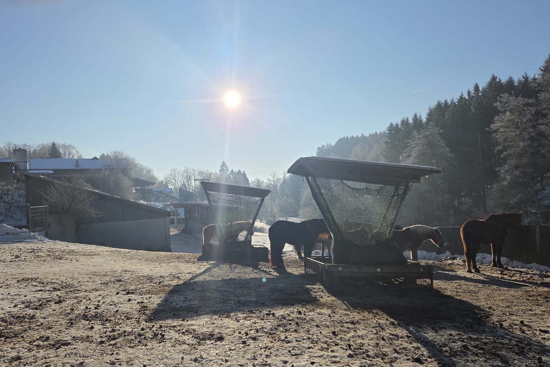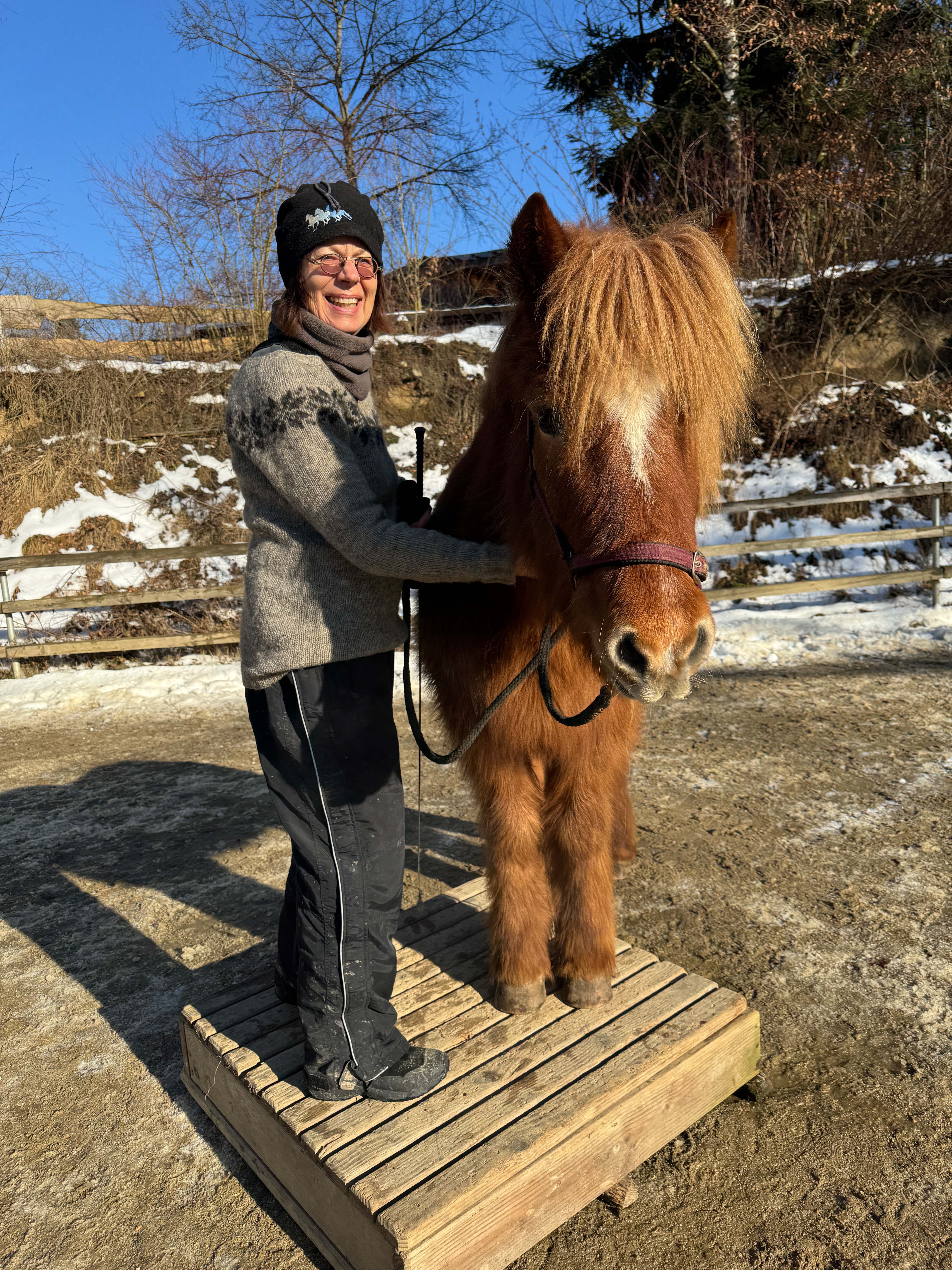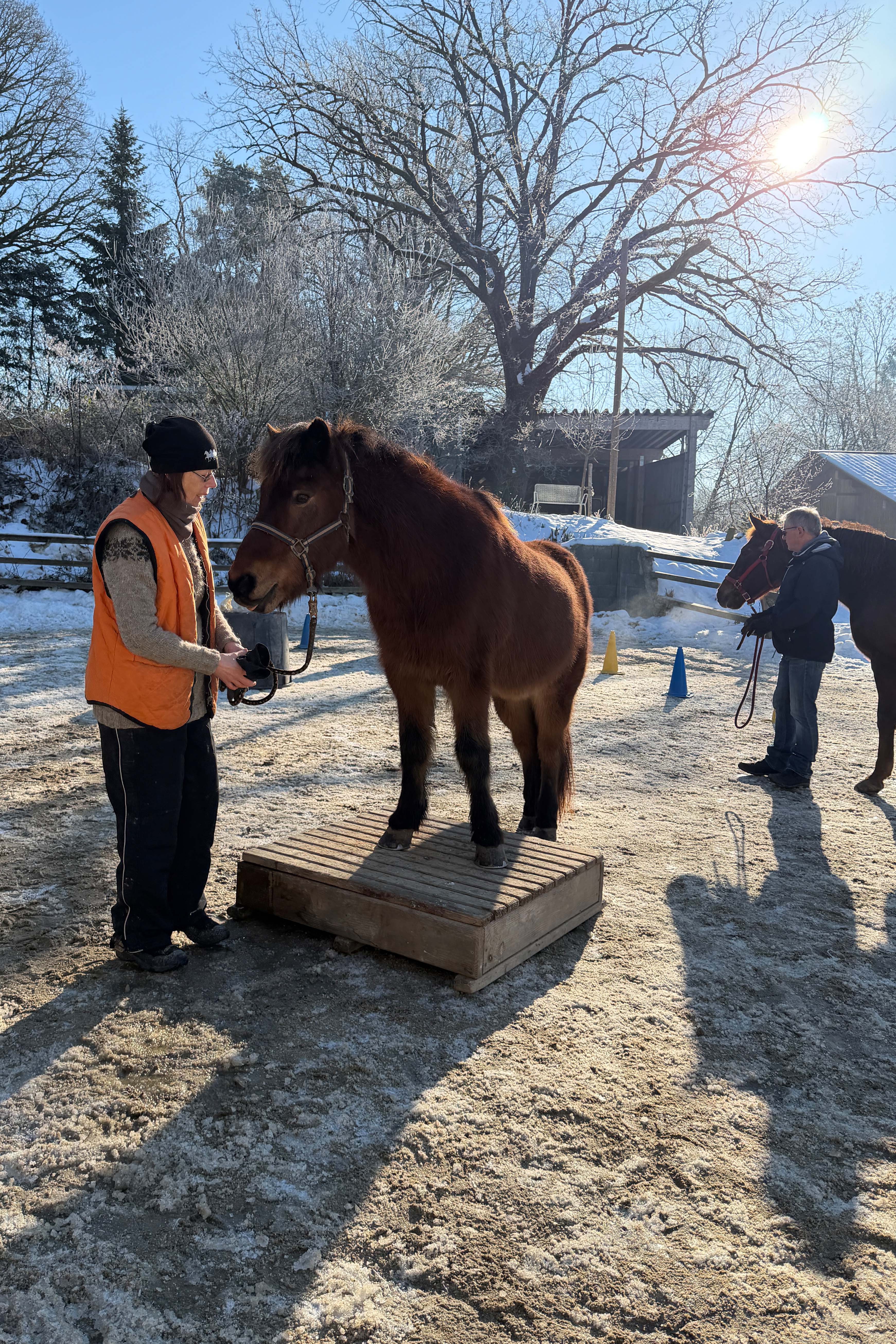 Aber auch die Sonne verwöhnte uns ab und zu. Das nutzten wir gleich zu ein paar Geschicklichkeitsübungen am Reitplatz.